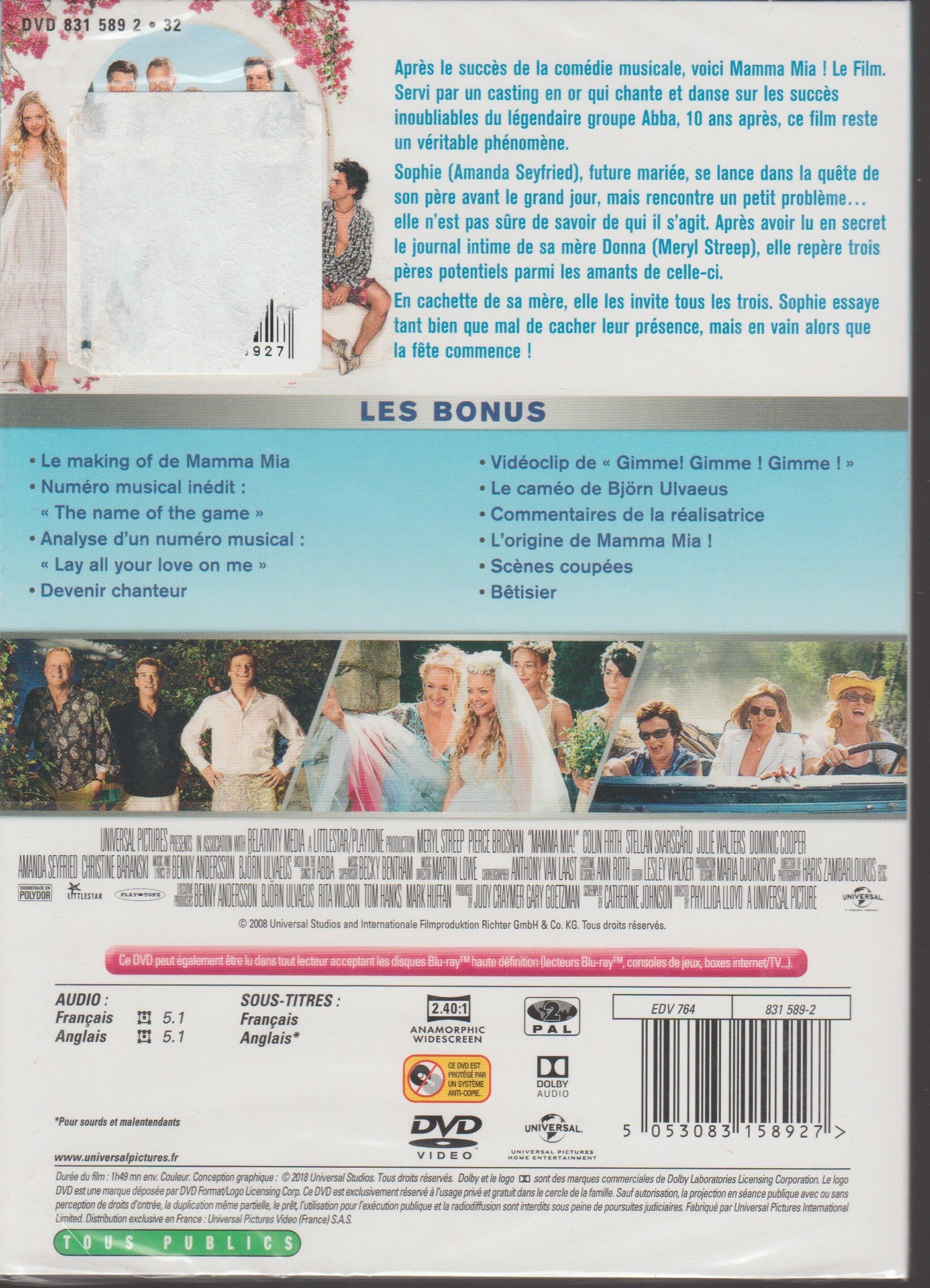 Mamma Mia ! Le Film Dvd (MR2) VF - Neuf - Edition 10eme Anniversaire